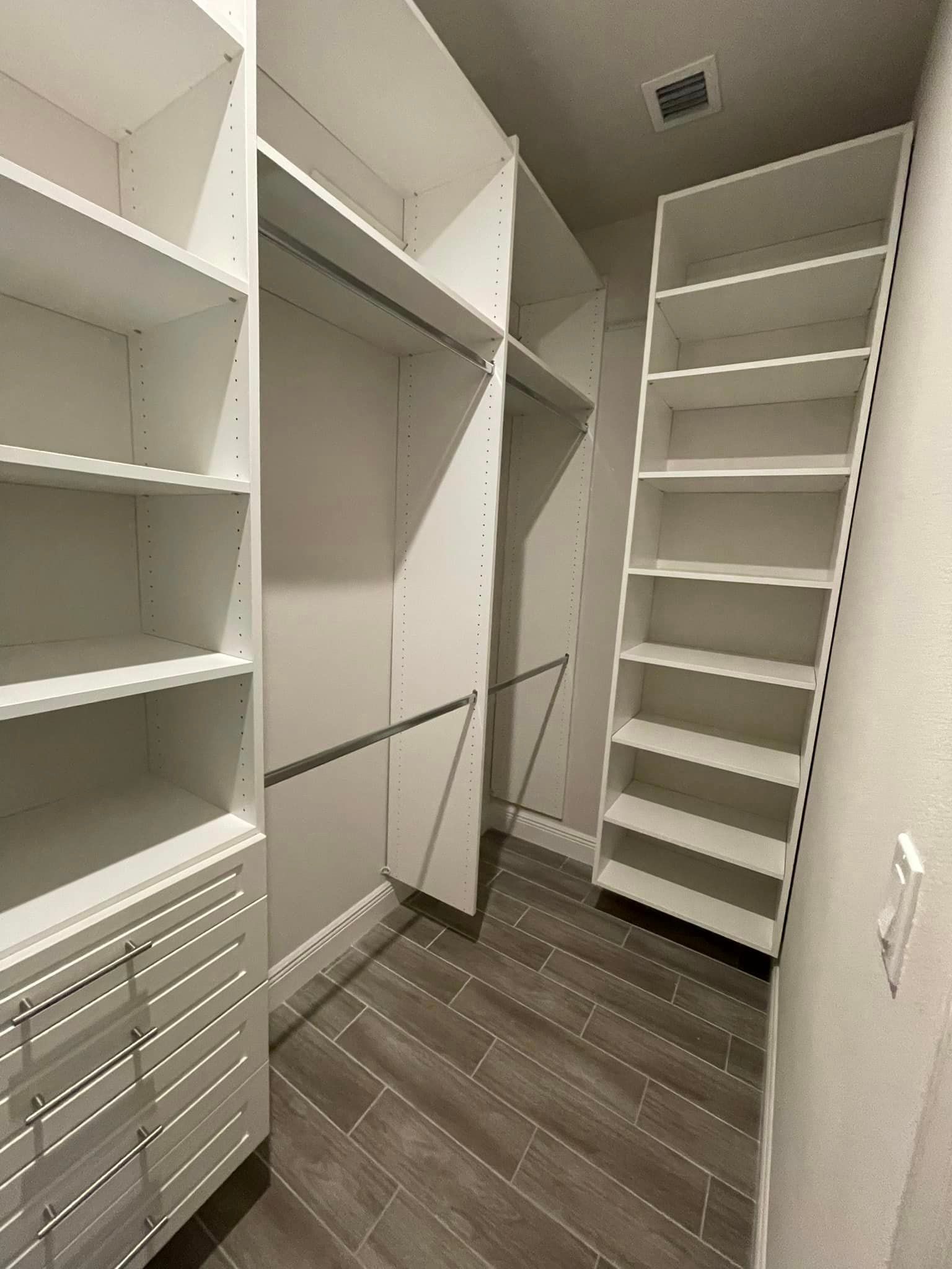 Transform your space with our custom closet solutions. From sleek designs to smart storage, we create personalized closets that perfectly fit your style and needs. Every detail is crafted to maximize space, enhance organization, and bring a sense of elegance to your home. Discover the perfect blend of functionality and design with our expert custom closet services.